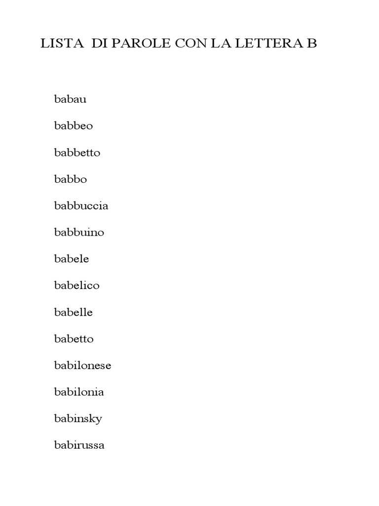 Parole che iniziano con la lettera B - MondoMamma Quali sono le parole che iniziano con la lettera B? Nell'elenco che segue vedremo quali sono le parole che iniziano con B. Continua a leggere. Parole che iniziano con B BA - Parole che iniziano con BA BE - Parole che iniziano con BE BI - Parole che iniziano con BI BL - Parole che iniziano con BL BO - Parole che iniziano con BO