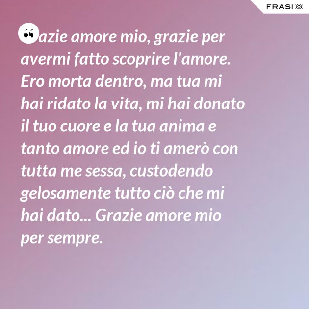 Ciao amore mio dolce mi trovo di... - Amando.it AMORE MIO SEI TUTTO CIO' CHE HO SEMPRE DESIDERATO! Grazie di esistere e di essere entrato a far parte della mia vita! TI AMO E TI AMERO' PER TUTTI I GIORNI ... ti amo amore mio ...grazie di esistere.wmv - YouTube Mar 23, 2012 ... ti amo amore mio ...grazie di esistere.wmv. 149K views 11 years ago. ilariaedany. ilariaedany. 346 subscribers. Subscribe. 1.5K. I like this.